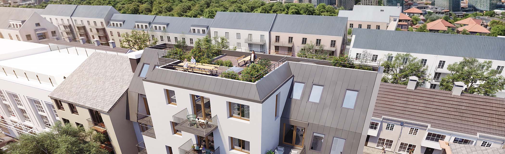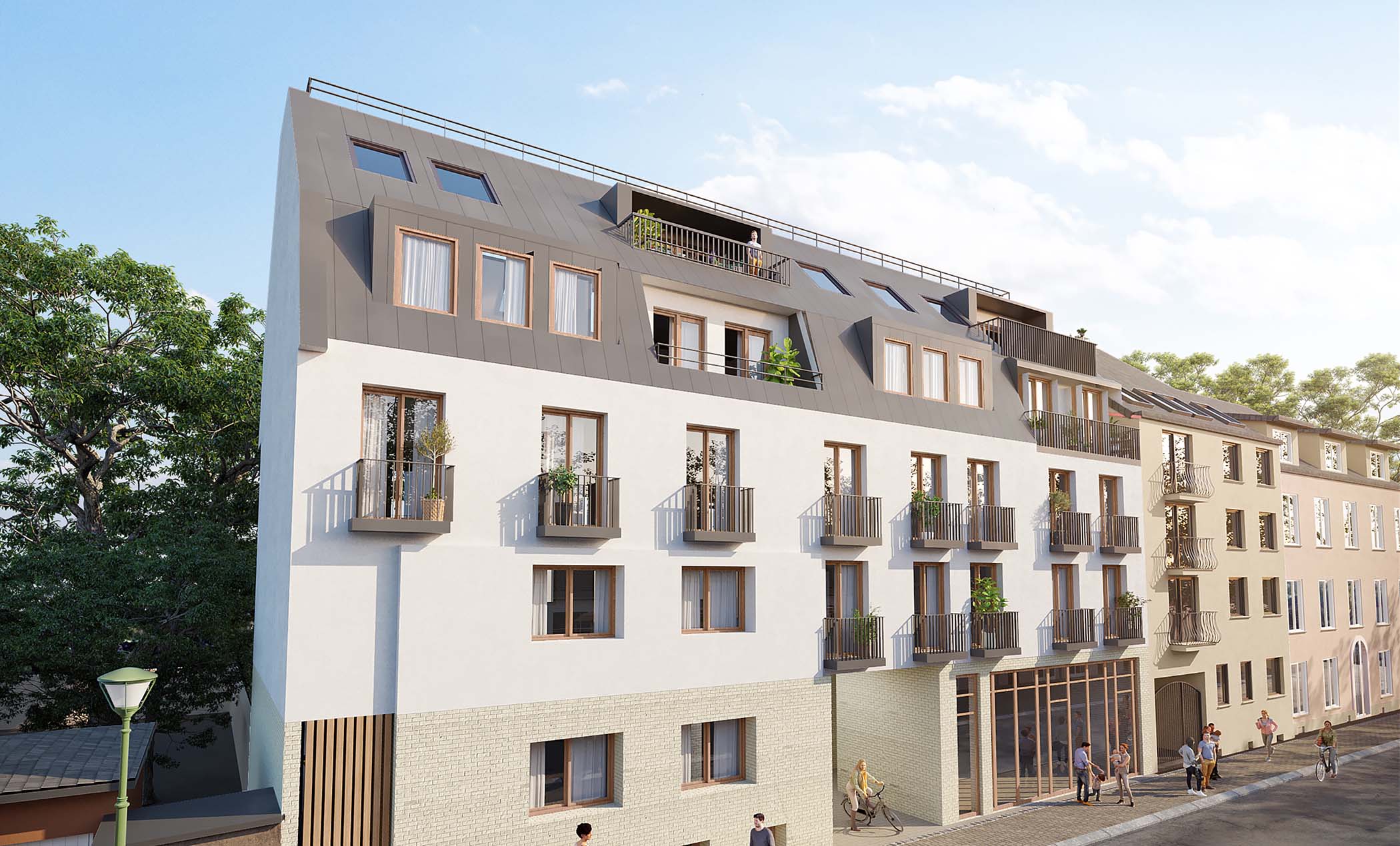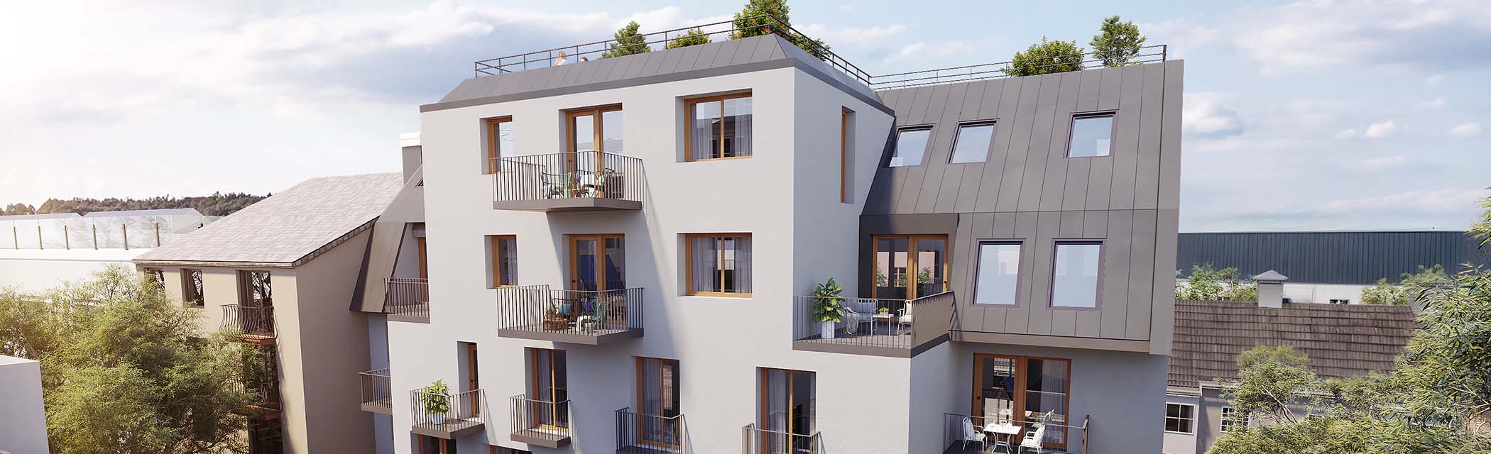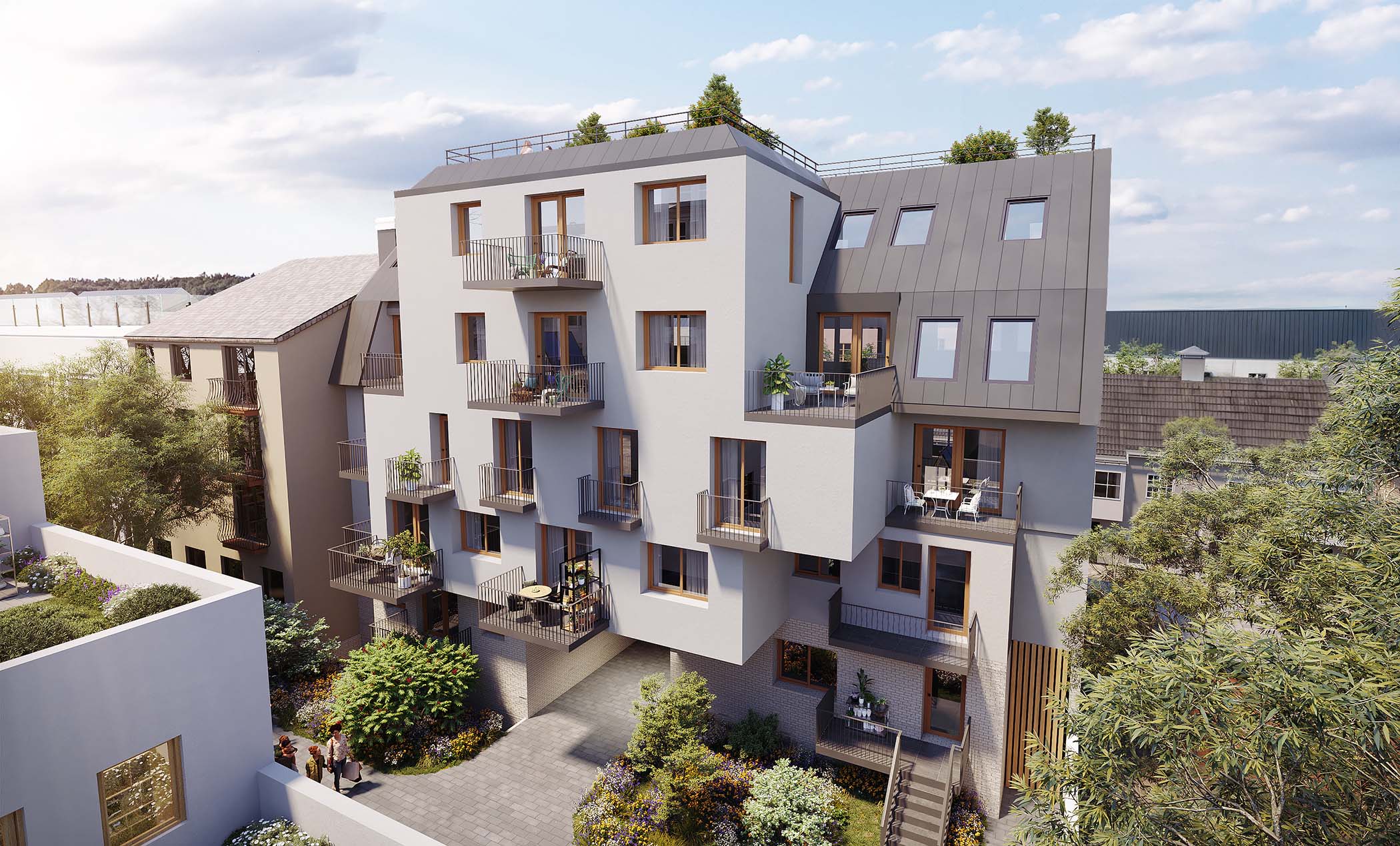 Der energieeffiziente Neubau (Energieeffizienzklasse A+, EH 40 mit QNG+) umfasst 17 moderne Eigentumswohnungen sowie zwei attraktive Gewerbeeinheiten im Erdgeschoss. Ein außergewöhnliches Townhouse mit zwei Dachterrassen bietet im Innenhof zusätzlichen Wohnraum mit viel Privatsphäre.