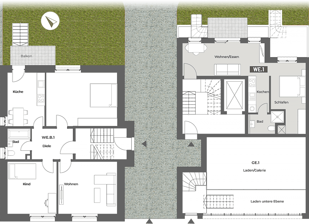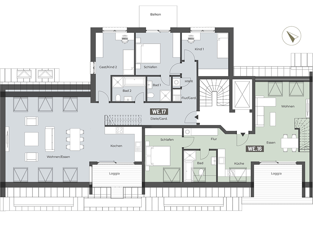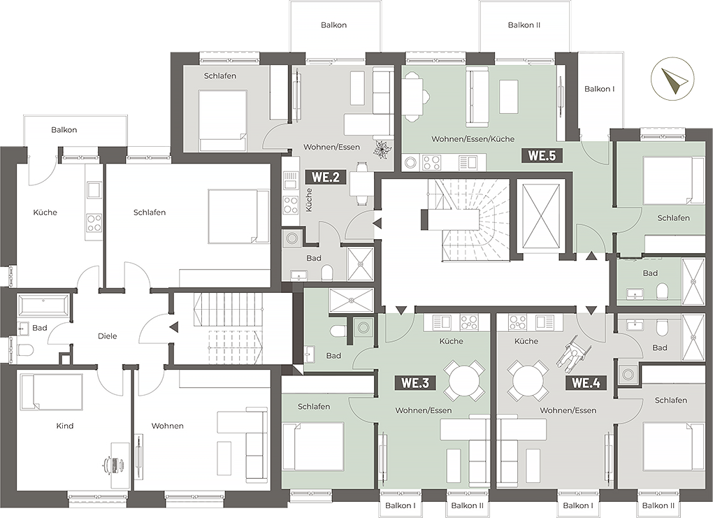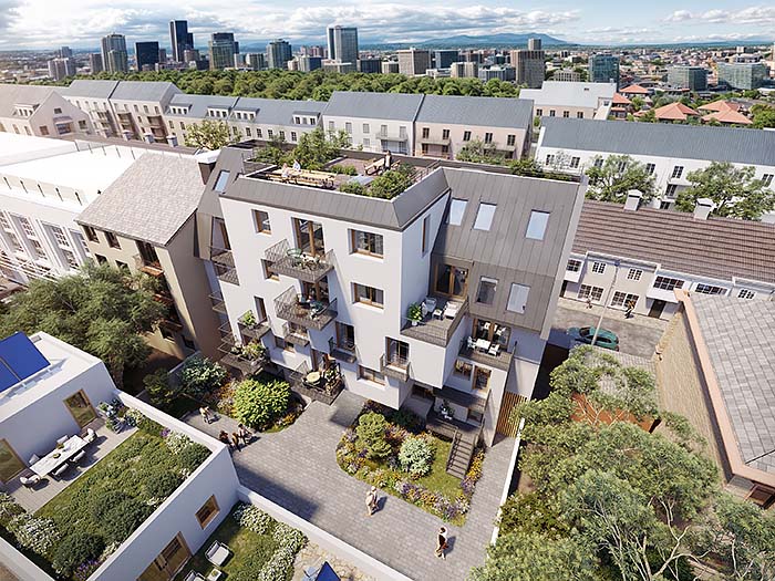 Die 2- bis 5-Zimmer-Wohnungen mit Wohnflächen von ca. 33 bis 155 m² überzeugen mit durchdachten Grundrissen und bieten Raum für unterschiedlichste Lebensentwürfe – ob für Singles, Paare oder Familien. Das 4-Zimmer-Townhouse im Innenhof mit ca. 126 m² Wohnfläche eignet sich besonders für Familien, die urbanen Komfort und Privatsphäre schätzen.
